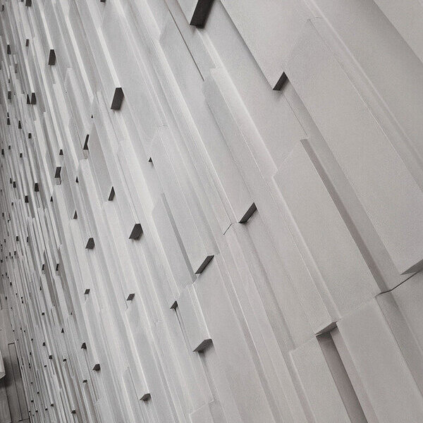 Hochfeiner GODELMANN Architekturbeton, edelstahlkugelgestrahlte Oberfläche, dreidimensionales Stabprofil, mineralimprägniert.